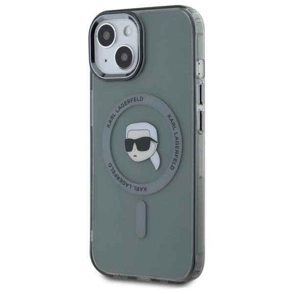Mobiili lisaseade Karl Lagerfeld KLHMP15SHLSKIK iPhone 15 6.1" tšarny/must hardcase IML Metal Karl Head MagSafe