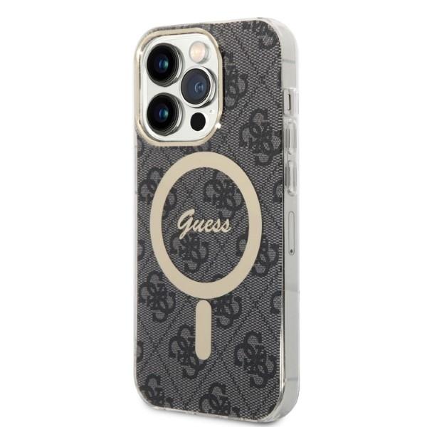 Mobiili lisaseade Guess Zestaw GUBPP14LH4EACSK ümbris+ laadija iPhone 14 Pro 6,1" tšarny/must kõva ümbris 4G Print MagSafe