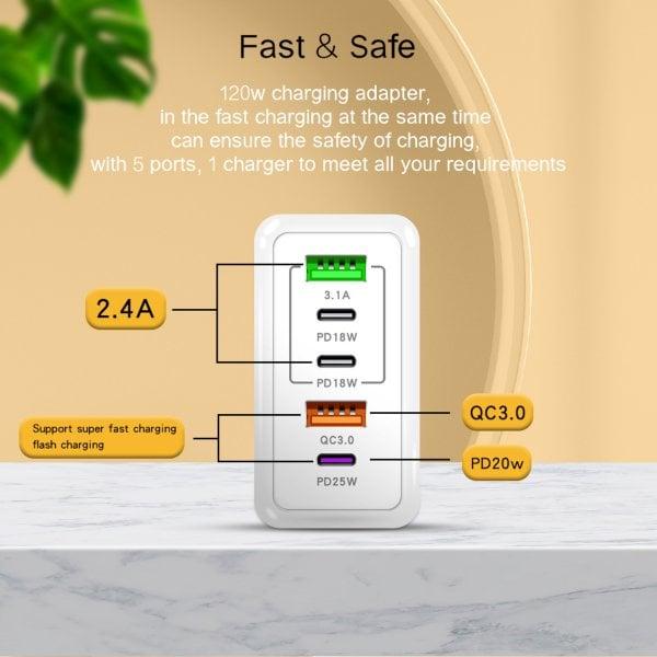 Mobiili lisaseade Riff 120W QC3.0 Super fast charger with x2 USB ports / x3 USB-C