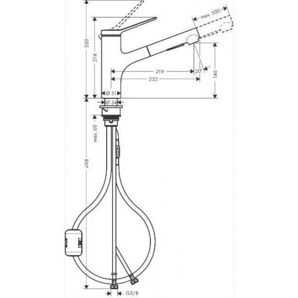 Hansgrohe Zesis M33 150 pull-out spray 2jet 74800000