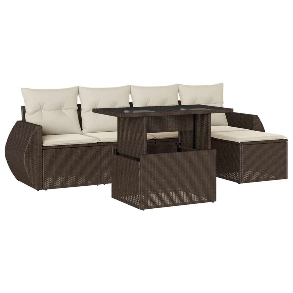 vidaXL 6-osaline aiamööblikomplekt patjadega, pruun, polürotang 3268503