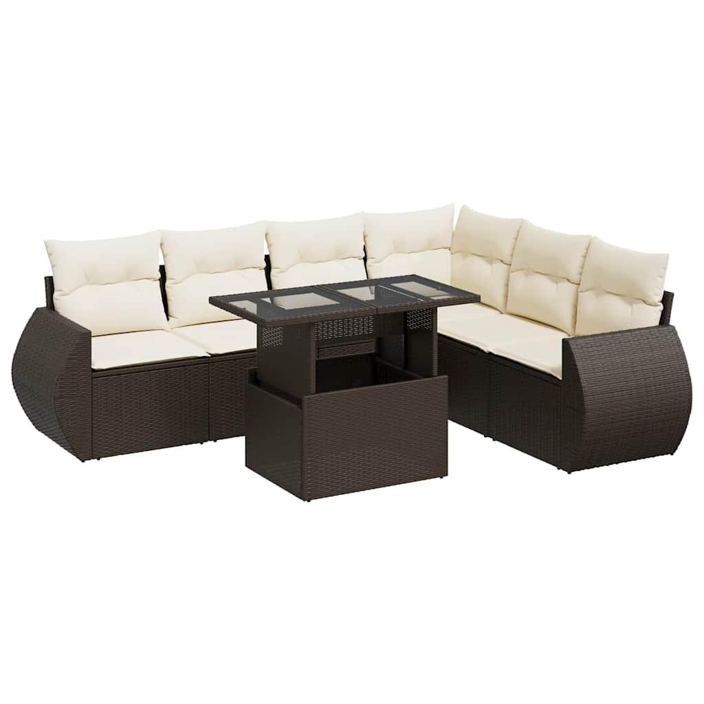 vidaXL 7-osaline aiamööblikomplekt patjadega, pruun, polürotang 3326654
