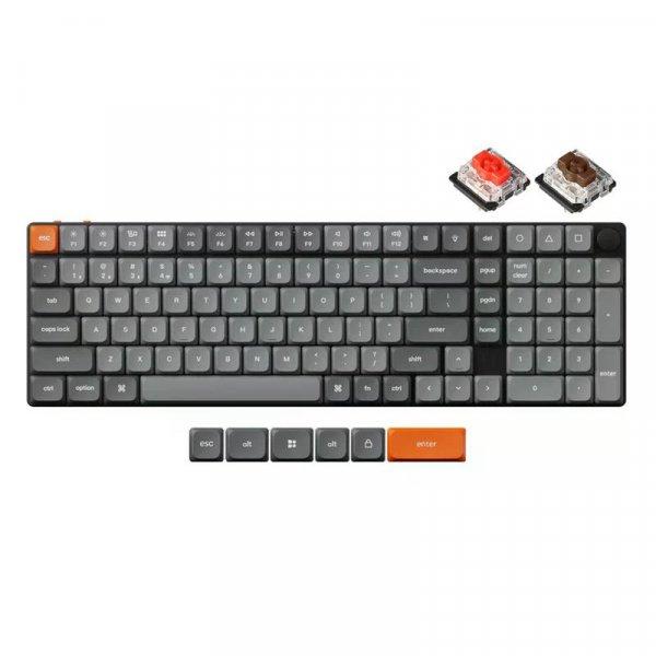 Keychron K17 Max RGB Brown Switch Wireless Low-Profile Keyboard (Black)The Keychron K17 Max RGB Brown Switch is a low-profile mechanical keyboard that combines elegance, performance and versatility. With three connection modes - 2.4 GHz, Bluetooth 5.1 and wired - it enables seamless switching between devices, while QMK software and the Keychron Launcher app allow full customization of the key layout. The slim design with an aluminum chassis, silent Gateron MX 2.0 switches, IXPE acoustic foam and RGB backlighting guarantee exceptional comfort for work and gaming. In addition, the hot-swappable switch allows easy replacement of switches without soldering. This is the ideal solution for demanding users, combining style, functionality and reliability.Ultraslim designKeychron K17 Max is one of the thinnest mechanical wireless keyboards on the market. With low-profile Gateron MX 2.0 switches that are 31% thinner than standard switches, the keyboard offers exceptional typing comfort without compromising on pressure response. The rugged aluminum housing adds durability while maintaining a lightweight and stylish look.Multiple ways to connectThe K17 Max supports up to three connection modes to suit your needs. 2.4 GHz offers a super-fast connection with a refresh rate of 1,000 Hz, ideal for gaming and work that requires lightning-fast response.Bluetooth 5.1 opens up the ability to connect up to three devices simultaneously - computer, tablet and smartphone - and switch seamlessly between them. A wired connection, on the other hand, guarantees reliable and lag-free performance for the best performance during intensive tasks.Full personalization and compatibilityWith QMK's open-source software, you can freely map keys, create macros and keyboard shortcuts, optimizing the keyboard for your own needs. With the help of the Keychron Launcher app, configuring the layout of keys becomes quick and intuitive - whether you're using Windows, macOS or Linux. The K17 Max offers a native Mac layout while maintaining full Windows compatibility. The keyboard provides the same multimedia features and function keys as Apple keyboards, with additional customization options. With Keychron Launcher, you can easily configure key layouts and switch between systems without having to change overlays.Performance and quiet operation at the highest levelHidden inside the K17 Max is a powerful ARM microcontroller with 256 KB of Flash memory, providing unparalleled flexibility and performance. A refresh rate of 1,000 Hz in 2.4 GHz and wired mode guarantees minimal latency, making the keyboard perfect for dynamic gaming and intense work. Advanced IXPE foam combined with flexible latex foam dampens key sounds while offering excellent responsiveness and switch support. Each press is quiet, precise and pleasant, redefining the standard for typing comfort.Customizable and stableThe Keychron K17 Max supports a hot-swappable mechanism, allowing you to replace switches without soldering. Whether you prefer soft and quiet keys or a crisp click, you can easily customize the keyboard to your liking. Low-profile Gateron Brown MX 2.0 switches provide reliable, precise and smooth operation. Double-molded PBT caps ensure durability and abrasion resistance, maintaining aesthetics even after prolonged use. Redesigned stabilizers eliminate the wobble of larger keys such as Space, Shift, Backspace and Enter, ensuring stability and typing comfort.Striking RGB backlighting and ergonomicsThe Keychron K17 Max offers more than 22 RGB backlighting modes and customizable color, brightness and speed effects. Three levels of angle adjustment allow for ergonomic hand positioning, minimizing fatigue during long work or gaming sessions. Whether you work, create or play, the Keychron K17 Max combines style, comfort and versatility to meet your needs. Opt for smart solutions and enjoy exceptional typing quality that turns everyday work into a real pleasure!Includedfully assembled keyboardType-A to Type-C cableextension cable to receiverType-A 2.4GHz receiverswitch pull tool (hot-swappable version)key extraction tool ManufacturerKeychronModelK17 MaxNumber of keys104Keyboard layout96%, ANSISwitchesLow-profile mechanical GateronDirection of switchesNorth-facing (facing north)Switch colorBrown SwitchKeyboard colorBlackNumber of multimedia keys12Hot-swappableSupportedFrame materialABS + aluminumOverlay materialLow-profile, double-molded PBTRefresh rate (2.4 GHz and wired mode)1000 HzRefresh rate (Bluetooth mode)90 HzN-Key Rollover (NKRO)Yes, in both wireless and wired modesBacklighting22 RGB backlight modes + customizableRechargeable battery2000 mAh lithium-polymer battery (rechargeable)Wireless operation time (backlight off)Approximately 95 hours (lab test results may vary)Wireless operating time (RGB - lowest brightness)Approximately 50 hoursConnection2.4 GHz / Bluetooth / wired USB-CBluetooth version5.1Bluetooth device nameKeychron K17 MaxCompatibilitymacOS / Windows / LinuxDimensions387 x 119 mmWeight750 gHeight without caps (front)10.26 mmHeight without pads (rear)15.36 mmHeight with caps (front)20.32 mmHeight with caps (rear)26.53 mmTilt angle when writing2º, 4º, and 6ºMicrocontroller (MCU)ARM Cortex-M4 32-bit STM32F402 (256 KB Flash memory)Operating temperature range-10 to 50℃ ChargingCharger includedNoCharging portUSB-CSupport for PD fast chargingNo