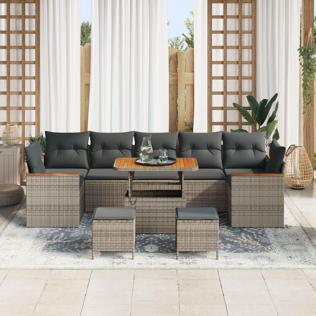 vidaXL 10-osaline aiadiivanikomplekt padjadega hall polürotang akatsia, 3-osaline aia söögilaud padjadega hall polürotang akatsia 3364983