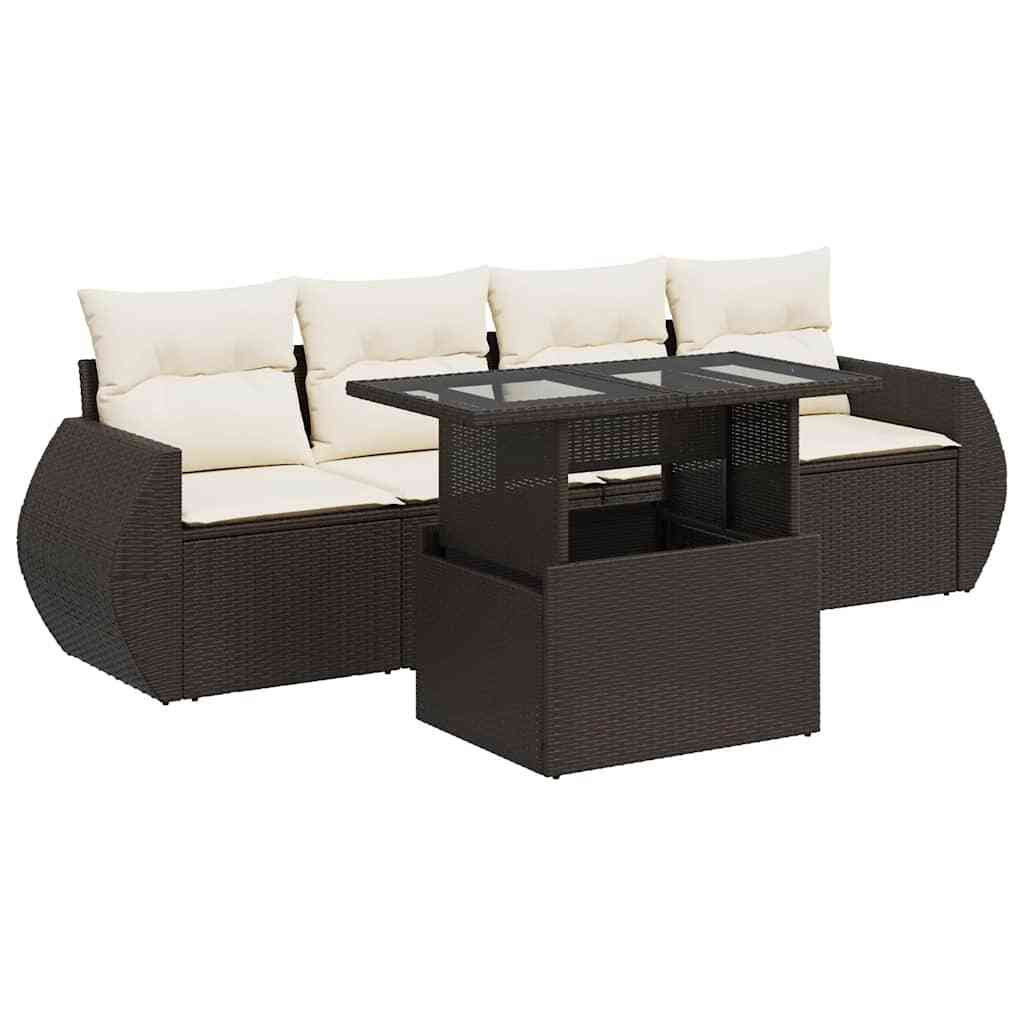vidaXL 5-osaline aiamööblikomplekt patjadega, pruun, polürotang 3326564