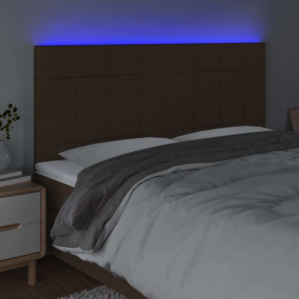 vidaXL LED-voodipeats, tumepruun, 180x5x118/128 cm, kangas 3122441