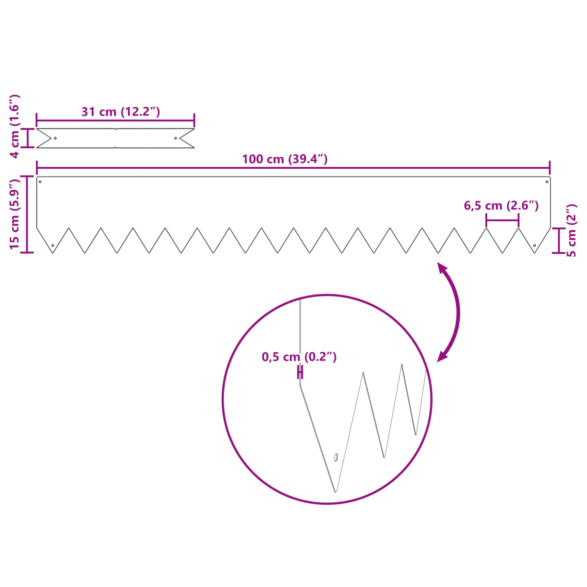 vidaXL muruäärised 50 tk Valge 100x0.5x15 cm Plastik 865925