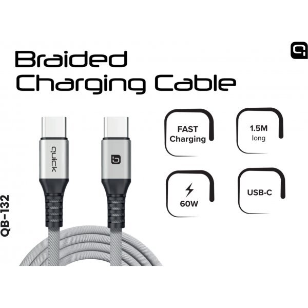 QUICK QB-132 Braided 60W USB-С / USB-С 1.5m Gray