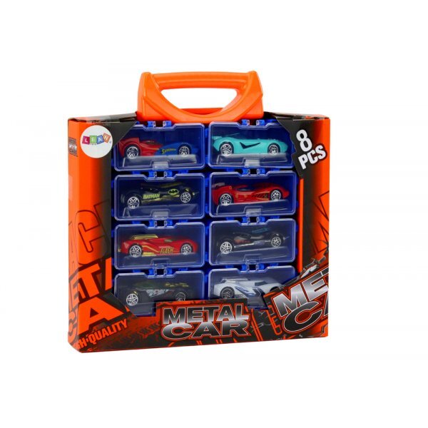 Lean Toys A set of cars with springs in a metal suitcase, 8 pieces