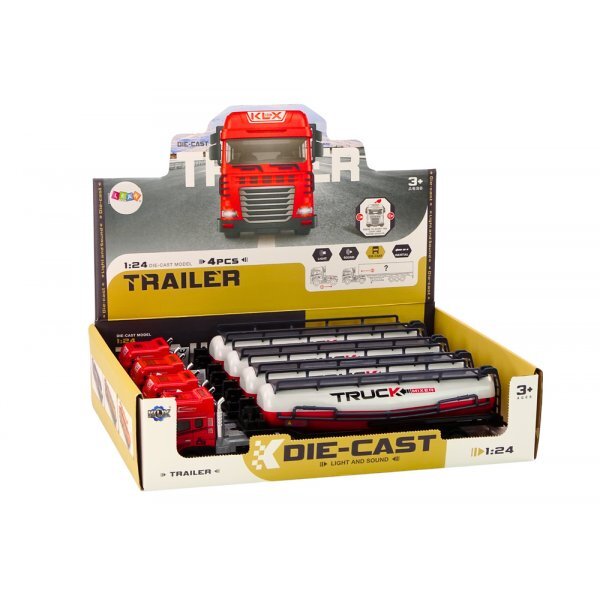 Lean Toys Truck With Trailer TIR Tanker 1:24 Car Truck Red Sounds
