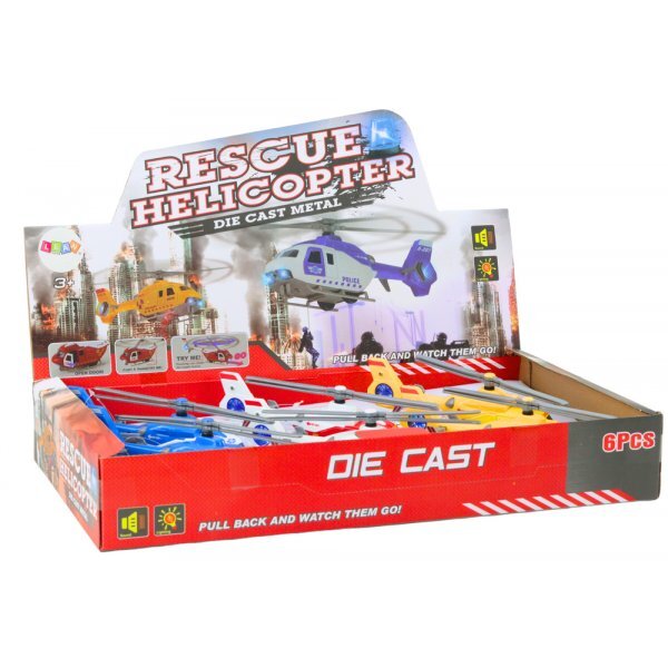 Lean Toys Police Fire Rescue Helicopter Metal Drive Opening Door