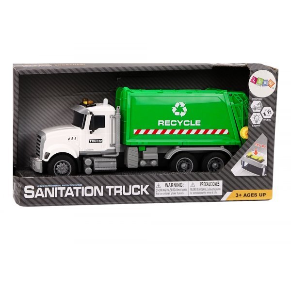 Lean Toys Garbage truck Garbage bins Lights Sounds Drive White and green