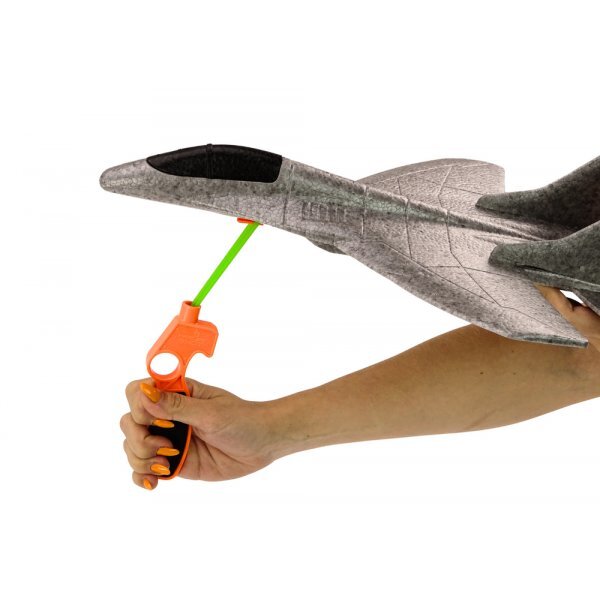 Lean Toys Styrofoam Fighter Plane With Slingshot Launcher Gray
