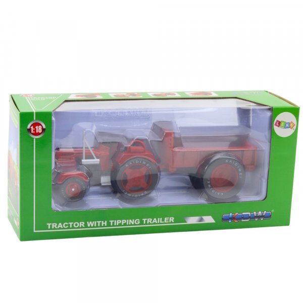 Lean Toys Metal Farm Tractor With Trailer Red 1:18