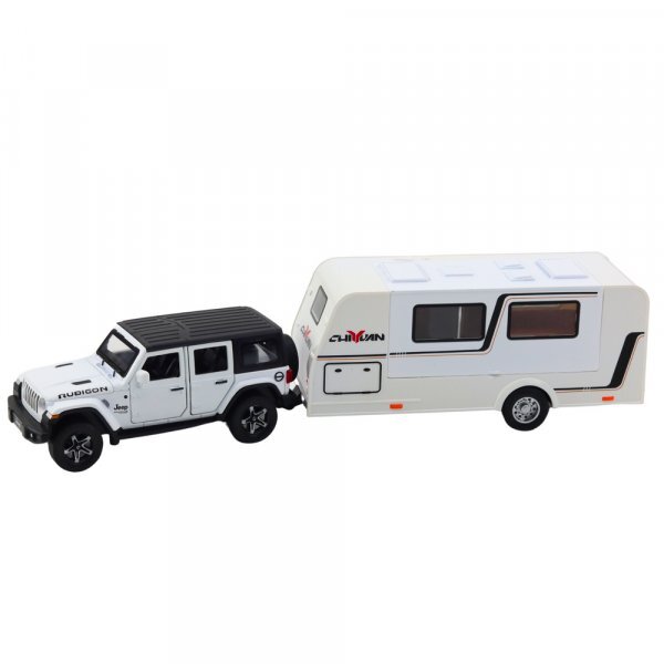 Lean Toys Set of Car Off-road Camper Metal Drive Lights Sounds White 1:32