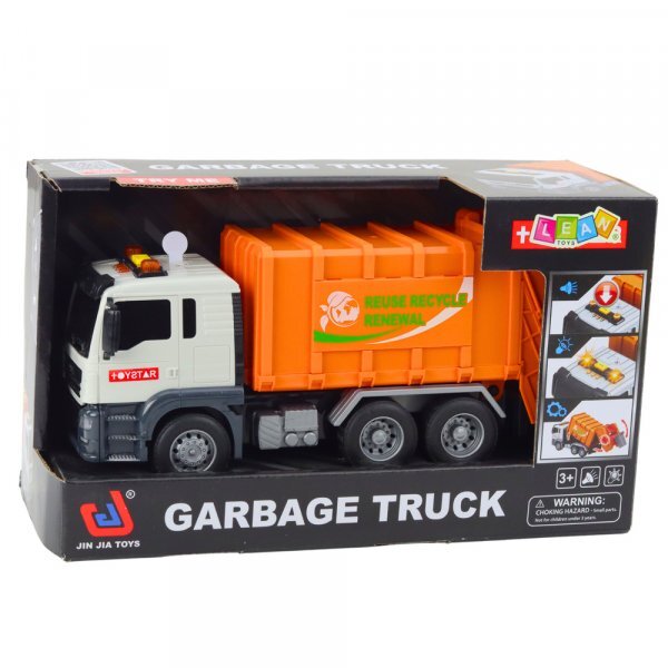 Lean Toys Garbage Truck Garbage Bins Lights Sounds Orange 1:14
