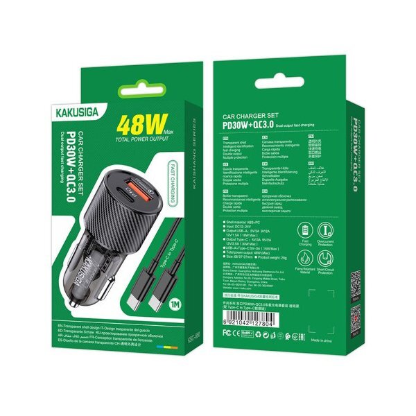 Mobiili lisaseade iKaku KSC-856 PD30W car charger USB | USB-C | 48W + Type-C to Type-C