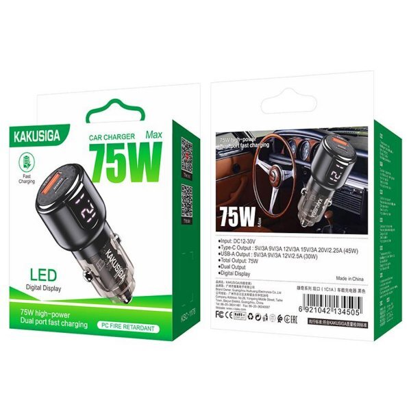 Mobiili lisaseade iKaku KSC-1178 Dual port 75W Car charger USB + Type-C