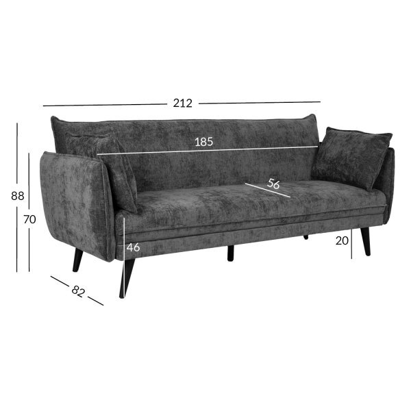 Evelekt Sofa bed NOELLA 3-seater, dark grey