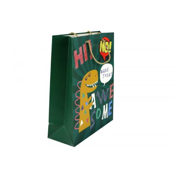 Lean Toys Green Dinosaur Paper Gift Bag 32cm x 26cm x 10cm