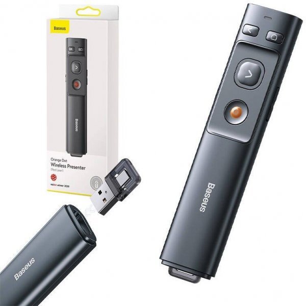 Baseus Orange Dot Wireless Presenter (Red Laser) Grey