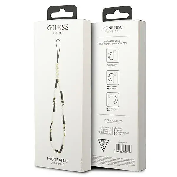 Mobiili lisaseade Guess Ripats telefoni rihmale must-valged Heishi helmeste detailid