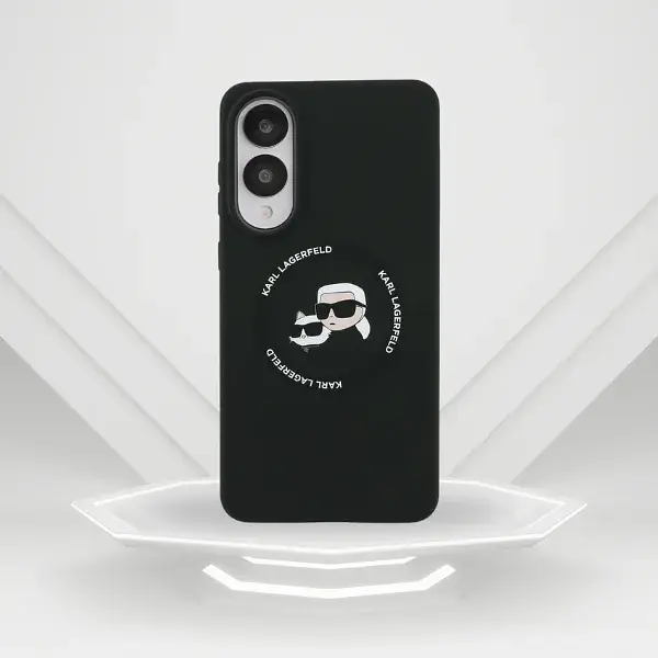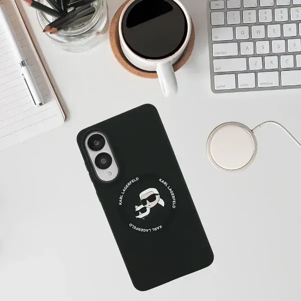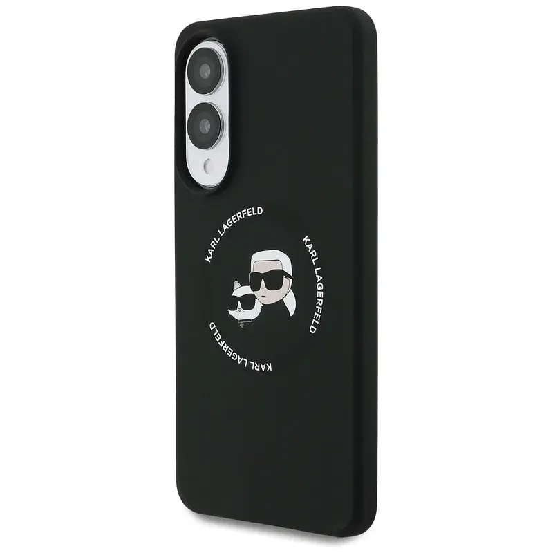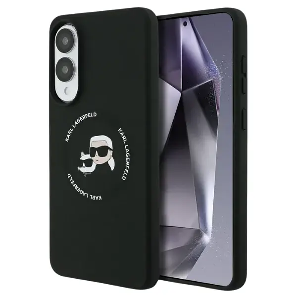 Mobiili lisaseade Karl Lagerfeld Karl Lagerfeldi silikoonist ümbris topeltpeade ja ringikujulise MagSafe'iga Samsung Galaxy S25 Edge must