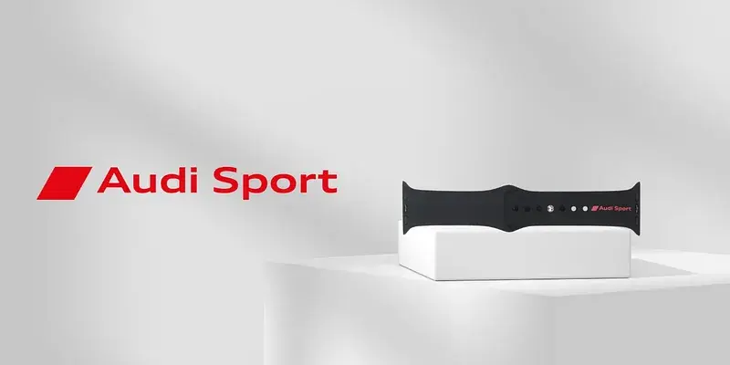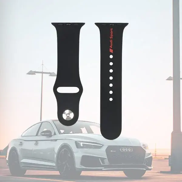Nutikella tarvik Audi Sport punase logoga silikoonist kellarihm Apple Watch 40/41/42mm must