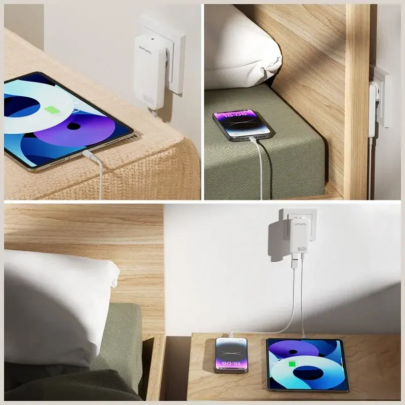 Mobiili lisaseade 4smarts Seinalaadija FlatPlug Slim Dual 65W GaN 2xUSB-C valge