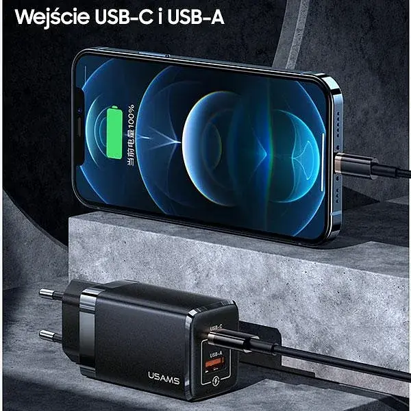 Mobiili lisaseade Usams Laadija T41 USB-C+USB GaN 47WPD+QC (ainult laadija) Kiire laadimine valge CC137TC02
