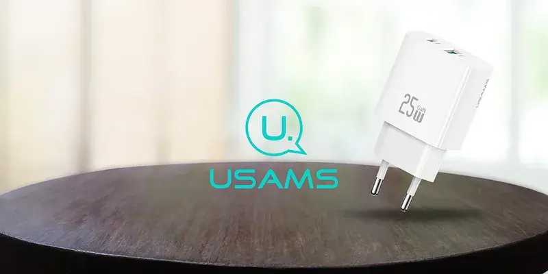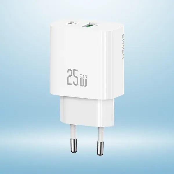 Mobiili lisaseade Usams Seinalaadija CC315 T65 25W 1xUSB-C 1xUSB-A Kiirlaadimine valge
