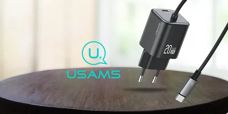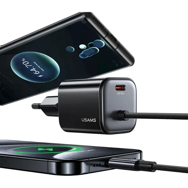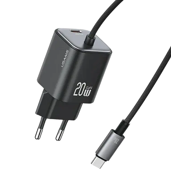 Mobiili lisaseade Usams JC seeria CC261 20W GaN mini kiirlaadija 2xUSB-C must
