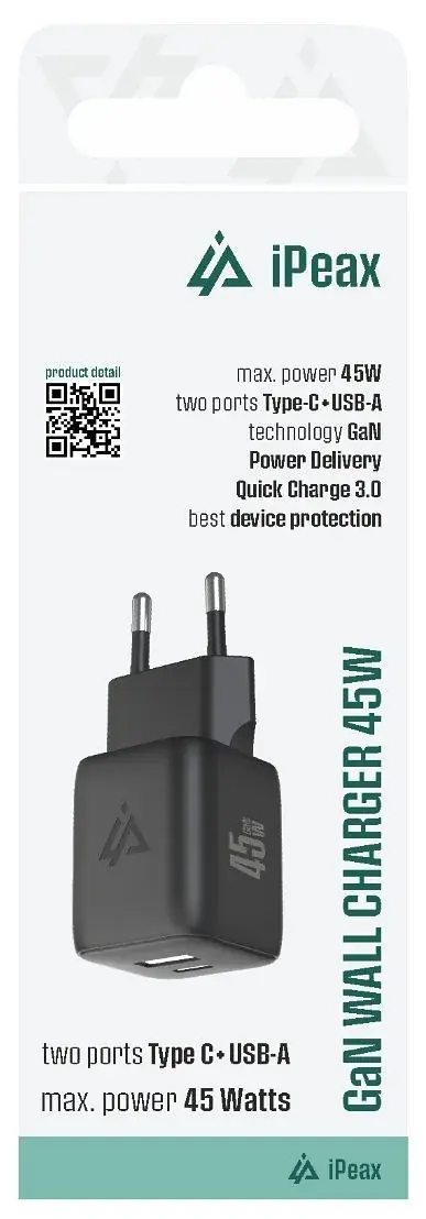 Mobiili lisaseade iPeax GaN USB-C / USB-A Charger 45W