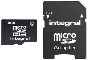 Original part number INMSDH8G10-40U1 Product name Memory card Integral UltimaPro microSDHC 8GB CL10 UHS1 U1, Up to 40MBs Producer INTEGRAL Class of product FLASH memory Memory card type Micro SecureDigital High-Capacity (microSDHC) Memory capacity (flash) 8 GB Reading speed 40 MB/s Width 11 mm Depth 1 mm Height 15 mm Write-protection switch No Additional information With SD adapter More info www.integralmemory.com