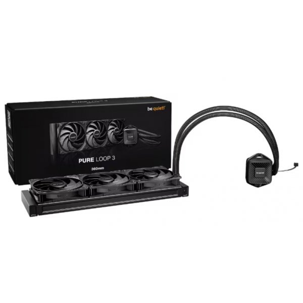 CPU cooler Pure Loop 3 360mm Pure Loop 3 360mm is the impressively high-performing and silent All-in-One water cooling unit for users with overclocked systems. Impressively high cooling performance for all consumer CPUs State-of-the-art PWM pump with 6-pole motor reduces vibrations to an absolute minimum 3 Pure Wings 3 120mm PWM high-speed fans with funnel-shaped air outlet offer high static pressure with very quiet operation Daisy-chained PWM fans for maximum convenience Flexible sleeved tubes and a simple mounting ensure easy handling Easy-to-access refill port for convenient handling Neat design language with elegant looks and subtle details