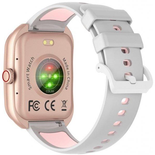 Colmi P86 Smartwatch (Pink Gold)Colmi P86 is a smartwatch designed for convenience, everyday comfort and functionality. It weighs only 40g, making it virtually imperceptible on your wrist - whether you're at work, training or relaxing. The built-in Always On Display provides access to the most important information without having to wake the device, and the rotating side button makes it easy to navigate menus. The watch offers more than 100 sports modes and monitors key health parameters. This is complemented by a wide selection of dials that can be customized to suit your style, including with your own photos.Lightweight design and convenient operationThe smartwatch weighs just 40 grams, which translates into comfortable use even throughout the day. Thanks to the lightweight design, the watch does not compress or interfere with physical activity or sleep. The manufacturer also used a rotating crown, which you can intuitively scroll the screen, change views and zoom in or out of content.Easy-to-read displayThe Colmi P86 features a 1.93" AMOLED display with a resolution of 368 x 448 px, allowing convenient and clear access to notifications and settings. It also features a wide 98% RGB color gamut, accurate color reproduction and a wide viewing angle (178°). In addition, the Always On Display feature allows the time and other information to be displayed at all times - without the need to raise your hand or touch the screen. Users also have access to more than 100 dial styles, including dynamic and interactive ones, as well as the ability to create a custom design with a favorite photo.Monitoring health on a daily basisThe watch has an 8-channel heart rate sensor, a blood saturation (SpO2) sensor, and a function to measure stress levels. It also monitors sleep quality by analyzing the length and depth of your sleep, allowing you to better understand your own habits and improve your sleep hygiene. A menstrual cycle tracking function with reminders is provided for women.Ready for a workoutWith more than 100 sports modes, the watch can be tailored to almost any activity - from running and cycling to yoga or weight training. Thanks to precise sensors, it is possible to accurately track calories burned and progress in real time. It's a practical support for both those who train regularly and those who are just starting out.Durable designThe watch meets the 1ATM water resistance standard, which means it can handle splashes, rain, etc. The built-in 400 mAh battery allows it to last up to 12 days in basic mode and up to 7 days with heavy use.Features that make your day easierThe Colmi P86 offers a Bluetooth calling function, as well as the ability to receive notifications from your phone, allowing you to stay informed without reaching for your smartphone. There's also a music player, calculator, alarm reminders, phone camera control, games and a voice assistant. This makes the watch useful not only as a health and workout monitoring tool, but also as a practical companion in daily life.Includedsmartwatchmagnetic charging cableuser manual GeneralManufacturerColmiModelP86ChipsetJL7012Flash memoryRAM 640KB ROM 128MbHR SensorHX3918Case dimensions44.3 x 37.6 x 11 mmEnvelope colorPink goldCase materialPC + ABSStrapSiliconeStrap width22 mmWeight of the watch43 gButtonRotating crown (1 piece) Rechargeable battery and power supplyBattery typeLithium-polymerCapacity400 mAhCharging timeApproximately 2 hoursCharging methodMagnetic 2-pin cableOperating time5-7 days (typical use)Standby timeUp to 30 daysNumber of charging cyclesMore than 300Protection systemSeiko Y1 DisplayTypeAMOLEDDiagonal1,93"Resolution368 × 448 pixelsViewing angle178°Screen typetouch screenDesignGlassFusing technologyFull fit with OCA ConnectivityBluetooth5.3Bluetooth range10 metersApplicationColmi FitCompatible operating systemsAndroid 4.4 and above / iOS 8.0 and above / HarmonyOS WaterproofProtection class1ATM Multimedia and audioSpeakerYesMicrophoneYes LanguagesSmartwatchEnglish, Chinese, Japanese, Korean, German, French, Spanish, Arabic, Russian, Ukrainian, Italian, Portuguese, Dutch, Polish, Hungarian, Czech, Romanian, Indonesian, Thai, Turkish, Vietnamese, Greek, Malay, Bengali, KazakhApplicationEnglish, Simplified Chinese, Traditional Chinese, German, French, Arabic, Czech, Greek, Spanish, Japanese, Persian, Italian, Korean, Polish, Portuguese, Russian, Finnish, Swedish, Thai, Hungarian, Slovak, Croatian, Albanian, Turkish, Ukrainian FeaturesWatch functionsActivity, Sports modes, Workout history, Relaxation, Sleep monitoring, Heart rate measurement, Blood pressure measurement, Blood saturation (SpO2) measurement, Stress level measurement, Menstrual cycle tracking, Phone calls, SMS notifications, Weather, AI voice assistant, Remote camera control, Music player, Timer, Alarm clock, Stopwatch, World clock, Stock market, Calculator, Games, Muslim mode, Prayer, Meditation, Find phone, Settings, Brightness adjustment, Auto sleep detection, Change the watch face, Menu view, Screen backlighting when you raise your hand, Vibration and sound, Sleep mode, Do not disturb mode, Power saving mode, Phone on/off, Bluetooth audio, Phone reset, Nightstand mode, Turn off screen by covering, Edit time, On-screen clock, Language selection, Restart, Turn off, Reset settings, System version, App download, E-card, FlashlightApplication functionsSteps, Distance, Calories burned, Walking time, Daily step data, Weekly step data, Monthly step data, Results from last 7 days, Step count comparison with other users, Sleep monitor, Sleep quality assessment, Sleep trends from last 7 days, Heart rate, Heart rate measurement history (last 7 measurements), Blood saturation (SpO2), SpO2 measurement history (last 7 measurements), Menstrual cycle, Weight, Hydration or meal reminder, Activities, Workout program, Meditation workout, Exercise, View workout history, Watch battery status, Watch face store, Notifications, Find device, Alarms, Muscle mode, World clock, Stock s