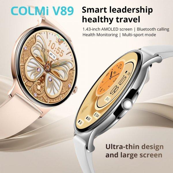 Colmi V89 smartwatch (steel, black)The Colmi V89 is a smartwatch that combines a sleek design with a wide range of features useful for both everyday use and workouts. With its slim design, clear AMOLED screen and extensive health and activity monitoring options, it will work well for people who are looking for a convenient and practical device.Slim design and a screen that makes a differenceThe Colmi V89 watch was designed with convenience and aesthetics in mind. Its case is only 7.9 mm thick, so it won't stand out from the wrist and looks good. Moreover, the 1.43-inch AMOLED screen with a high resolution of 466 × 466 provides vivid colors and convenient access to notifications - regardless of lighting conditions. In addition, the available dial designs allow you to personalize the look of the watch.Health monitoringThe Colmi V89 offers a set of health functions that allow you to better understand what happens to your body during the day. The watch continuously monitors heart rate and blood oxygenation levels (SpO₂), as well as tracking stress levels. Built-in algorithms analyze the quality of sleep, which can help improve daily rhythm and recovery. For women, there is a special function to track menstrual cycle, ovulation and reminders. All data is available in the app.More than 100 sports modes - with the active in mindThe smartwatch supports more than 100 different sports - from walking and running to cycling to weight training and yoga. The device tracks activity time, distance, number of steps and calories burned. The watch can accompany outdoor, gym and home workouts, providing clear data.Access to calls and messagesThe watch allows you to make phone calls by connecting to your phone via Bluetooth. You can answer, reject and make calls and view call history without reaching for your smartphone. Notifications from apps such as SMS, WeChat, WhatsApp and calendar also appear on the screen. A rotating crown is used to navigate the menu, which makes it much easier to use.Rugged designThe Colmi V89 smartwatch works for about 4-7 days during heavy use, and in standby mode it lasts up to 15 days. The watch is also splash-proof - rain, sweat or hand washing are not a problem for it. The built-in sealing ring protects against moisture, allowing you to use it in everyday situations without worrying about damage.Everything at hand - everyday functions and accessoriesColmi V89 is not limited to sports and health functions. At your disposal are also an alarm, stopwatch, timer, calculator, water drink reminders, phone camera control or smartphone finder function. The variety of available functions makes this watch a practical everyday helper. What's more, you can customize the look of the menu and choose from a variety of icon layout modes.Includedsmartwatchmagnetic charging cableuser manual GeneralManufacturerColmiModelV89Housing dimensions43 × 48 × 7.9 mmEnvelope colorsBlackCase materialZinc alloy + PC plasticStrapSteelStrap width20 mmWeight of the watch45 gButtonRotating crown (1 piece) Rechargeable battery and power supplyBattery typeLithium-polymerCapacity200 mAhCharging timeApproximately 2 hoursCharging methodMagnetic 2-pin cableOperating time4-6 days (typical use)Standby timeUp to 12 daysNumber of charging cyclesMore than 300Protection circuitSeiko Y1 DisplayTypeAMOLEDDiagonal1.43 inchesResolution466 × 466 pixelsViewing angle89° on each side (89/89/89/89)Screen typetouch screenDesignGlassFusion technologyFull fit with OCA ConnectivityBluetoothBLE 5.2 (app functions) + BT 3.0 (voice calls)Bluetooth rangeUp to 10 metersAppDa FitCompatible operating systemsAndroid 4.4 and above / iOS 8.0 and above / HarmonyOS WaterproofProtection classIP67 (splash, rain, sweat resistant) Multimedia and audioSpeakerYesMicrophoneYesVoice calls via BluetoothYes LanguagesSmartwatchEnglish, Korean, German, French, Spanish, Arabic, Russian, Ukrainian, Italian, Portuguese, Polish, Romanian, Indonesian, Thai, Vietnamese;ApplicationEnglish, simplified and traditional Chinese, Japanese, German, French, Spanish, Russian, Ukrainian, Italian, Portuguese, Dutch, Polish, Swedish, Finnish, Danish, Norwegian, Hungarian, Czech, Bulgarian, Romanian, Slovak, Latvian, Indonesian, Thai, Turkish, Vietnamese, Hindi, Pashto, Lithuanian, Estonian, Slovenian, Croatian, Greek FeaturesSmartwatchPhysical activity; Sleep; Heart rate measurement; Sports modes; Exercise history; Blood pressure (BP); Blood saturation (SpO2); Stress level; Weather; News; Camera shutter; Music player; AI voice assistant; Minuteman; Alarm clock; Stopwatch; World clock; Menstrual cycle tracking; Flashlight; Find phone; Calculator; Games; Brightness adjustment; Auto sleep detection; Change watch face; Menu view; Wrist lift = screen wake up; Vibration and sounds; Do not disturb mode; Power saving mode; Answer/reject calls; Bluetooth audio; Phone reset; Clock; Restart/shutdown; Download appsApplicationSteps, distance, calories, walking time; Statistics from 7 days; Step comparison with others; Sleep monitoring + sleep quality; Sleep trends from 7 days; Heart rate trends from 7 days;Pressure trends from 7 days; Saturation trends from 7 days; Extended workout data; Remaining watch battery level; Watch dials; Favorite contacts; Find device; Time format; Units (metric/inch); Do not disturb mode settings; Motion reminder; 24-hr. Heart rate monitoring: on/off; Music control from phone; Battery saving mode; Change language; Water drink reminder settings; Elevated heart rate alert; Weather settings; Monitor cycle / menstruation / ovulation days; Target settings; Automatic OTA updates NotificationsSupported appsPhone, Messages, Facebook, Messenger, X (Twitter), WhatsApp, Skype, Instagram, Zalo, Telegram, Line, KakaoTalk, Gmail, NateOn, Viber, WeChat, and others Sports modesList of sports modesWalking, running, cycling, skipping, badminton, basketball, soccer, climbing, dancing, yoga, fitness, elliptical, orbiter, weight training, rowing, stepper, aerobics, pilates, st