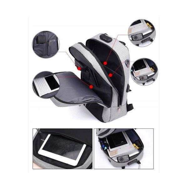 Sülearvutikott Gotel Anti-Theft Waterproof Backpack with USB Charging Port 25L Grey