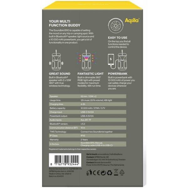 Aqiila Soundbird B10 3-in-1 Light Speaker and Powerbank Black