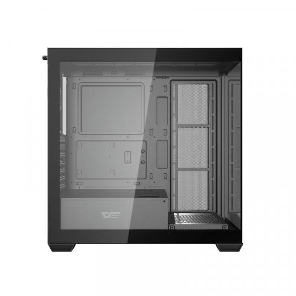 Darkflash DS900W computer case without fans (Black).The Darkflash DS900W case combines modernistic design with high functionality - the panoramic glass without A-pillar (A-Pillar) strikingly exposes the interior, and the well-thought-out design ensures stability and easy installation. It supports up to 10 fans and 360mm cooling to ensure efficient heat dissipation. Dust filters protect components, and the large internal space allows for mounting high-performance components. A USB Type-C (Universal Serial Bus, a connector standard used to power or charge electronic devices, as well as transfer data) connector on the front ensures fast and seamless connectivity, while the aesthetically pleasing finish and sturdy construction make it a great choice for those looking to assemble a high-performance and modern PC setup.Minimalist design with a panoramic viewThe Darkflash DS900W is for those looking for a sleek, futuristic design combined with functionality. The woodgrain accent front and double-sided tempered glass construction give the case a unique style and provide a 270° panoramic view of components without a disruptive A-pillar, making the entire interior composition aesthetically pleasing and transparent. With Darkflash, you'll build a stylish gaming space while providing your computer components with maximum protection.Stable design without compromisesThe case is based on a mechanical structure, which is shaped like a closing bracket, which translates into greater rigidity and resistance to deformation. The lack of a classic A-pillar does not negatively affect stability - on the contrary, the whole structure is characterized by high load-bearing capacity and strength, which will be especially appreciated by users building high-performance sets with heavy graphics cards.Powerful cooling without limitsThe DS900W is designed for maximum thermal efficiency. Up to 10 120mm fans can be installed inside, as well as CPU (Central Processing Unit, CPU) cooling up to 170mm high, effectively keeping temperatures down even during heavy use. Additional vents and a metal mesh back panel increase airflow and improve cooling performance by up to 15% while reducing noise levels (10% reduction). This allows you to enjoy pleasant, quiet operation, whether you are playing more demanding titles or using advanced graphics programs.Full protection against dustThe entire chassis has been protected from dust - it uses covers that effectively block particles, pollen and other debris from getting inside. This solution keeps the interior clean, which not only extends the life of components, but also makes them easier to maintain.Thoughtful space for expansionInside, there is no shortage of space for large components. In the DS900W you can mount a graphics card of up to 425 mm in length, as well as a heatsink of up to 360 mm on top and 240 mm on the side. The case supports motherboard formats ATX (Advanced Technology eXtended, standard motherboard and computer case size), M-ATX (Micro Advanced Technology eXtended, motherboard and computer case size smaller than ATX) and ITX (Information Technology eXtended, compact motherboard and computer case format). In addition, 7 PCI (Peripheral Component Interconnect, a connector standard for expansion cards, such as graphics or sound cards) slots provide ample opportunity to expand the kit with more expansion cards. Darkflash thinks of the most demanding gamers who expect reliability from their hardware.Easy access to the Type-C portOn the front of the case is a USB Type-C port, which offers fast data transfer (up to 10 Gbps) and convenient access for various electronic devices. This solution makes the case ready for current hardware standards, being always at your fingertips.Functional details and solid finishThe Darkflash DS900W is equipped with anti-vibration trapezoidal feet, which increase the stability of the design and reduce vibrations. Inside you'll find room for two SSDs (Solid State Drive, solid state drive) and two HDDs (Hard Disk Drive, hard disk drive), and the clear interior layout easily accommodates the components you need, while maintaining order and good air circulation.Includedmotherboard screws x18power supply screws x6hard drive screws x9copper post x3 (6 pieces pre-installed)fan coverclamp x5fan screws x12copper spacerHD audio support x2USB cap x3user manual ManufacturerDarkflashModelDS900WHousing typeMidi TowerSide panelTempered glassMotherboard standardATX, ITX, M-ATXPower supply standardATX, bottom mountSlots for internal drives4 (2 x 2.5", 2 x 3.5")Expansion card slots7Max PSU length360 mm on top; 240 mm on the sideMax length of graphics card425 mmMax height of CPU cooler170 mmMax number of fans10Fan mounting optionsTop: 120 mm x3/140 mm x2; Side: 120 mm x3; Rear: 120 mm; Bottom: 120 mm x3Water cooling mounting options-Number of fans installedNo fans includedType of fansNo fans includedButtons and controlsPower, Reset, LEDConnectorsType-C x1, USB3.0 x1, USB2.0 x1, HD AudioMaterial0.5 mm SPCCColorBlackHeight454 mmWidth218 mmDepth434 mm