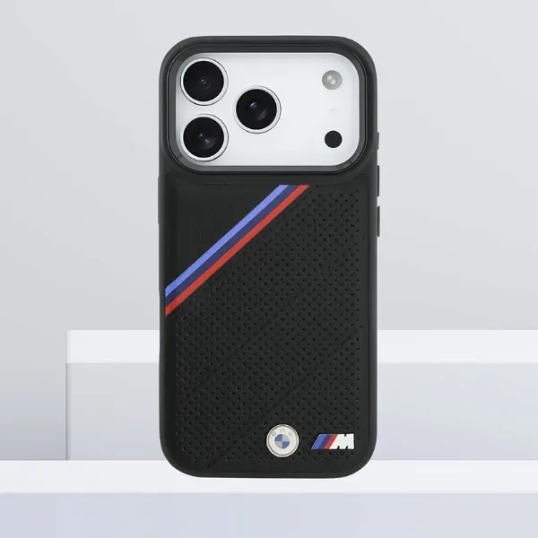 Mobiili lisaseade BMW M Tricolor Metallist Logo MagSafe Korpus iPhone 17 Pro jaoks Must