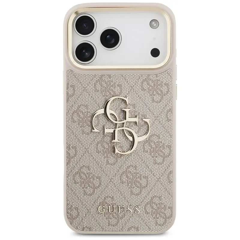 Mobiili lisaseade Guess 4G Suur 4G Klassikalise Logoga Suur Rihm Metallist Nuppudega Korpus iPhone 17 Pro Max Roosa