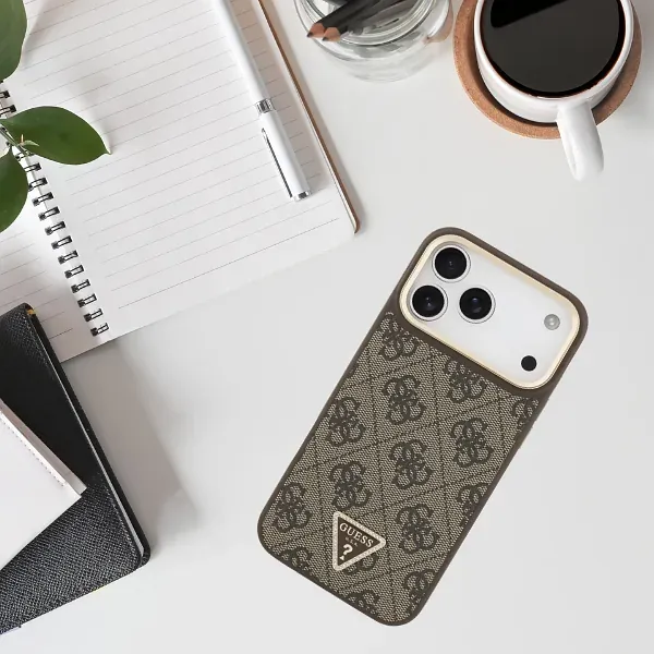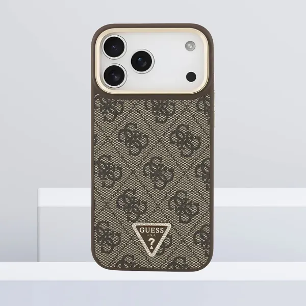 Mobiili lisaseade Guess 4G kolmnurga logoga MagSafe ümbris iPhone 17 Pro Max jaoks pruun-kuldne