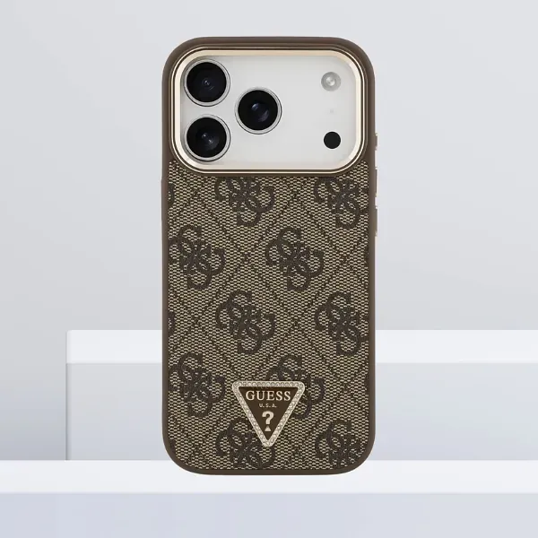 Mobiili lisaseade Guess 4G kolmnurga logoga MagSafe ümbris iPhone 17 Pro jaoks pruun-kuldne