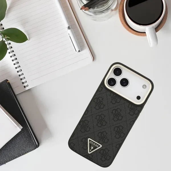 Mobiili lisaseade Guess Kaitseümbris 4G Triangle Logo MagSafe iPhone 17 Pro Maxi jaoks must-kuldne