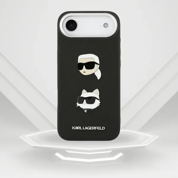 Mobiili lisaseade Karl Lagerfeld FW Grained Karl & Choupette Heads Pins & Logo Case for iPhone Air Black