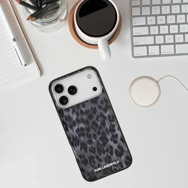 Mobiili lisaseade Karl Lagerfeld IML Leopard Muster MagSafe ümbris iPhone 17 Pro Max jaoks must