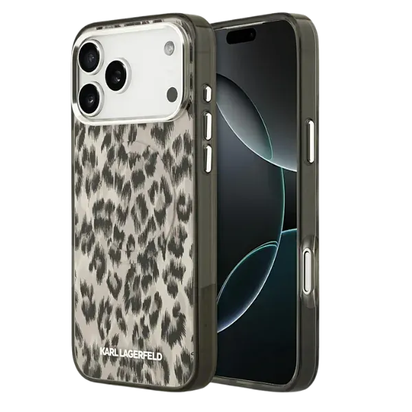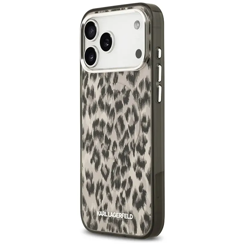 Mobiili lisaseade Karl Lagerfeld IML Leopard Muster MagSafe ümbris iPhone 17 Pro Max pruun