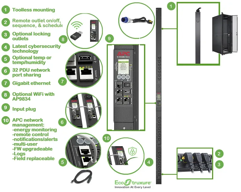 Võrguseade APC APDU9959EU3 toitejaotuskomponent (PDU) 24 vahelduvvoolu kontakt 0U Must