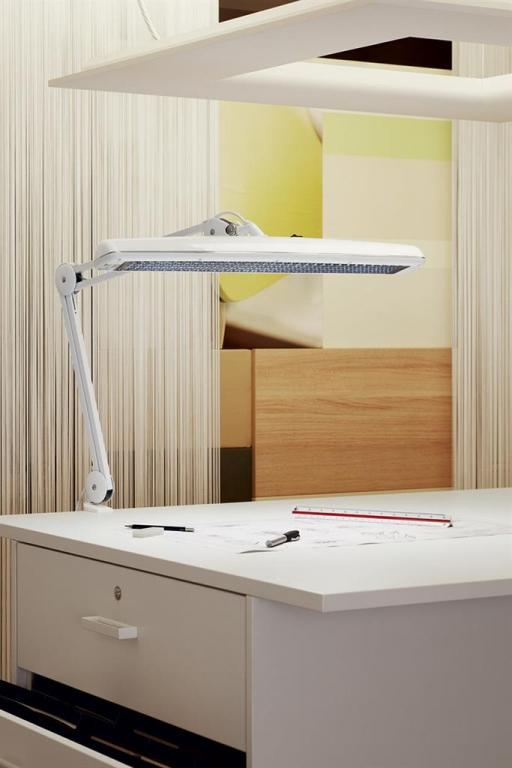 Desk Lamp, Includes 3 x 14 Watt energy-saving fluorescent tubes (Socket G5), 6500 Kelvin, daylight-white, The life of the lamps is 8.000 hours, 2800 Lux illuminance at 35 cm distance, luminous flux 1250 Lumen each lamp, The luminaire is sold with three lamps of the energy class "A+", 4002390048170 http://www.maul.de/office/en/shop/leuchten/energiespar-leuchte/workplace-luminaire-maulatelier/?card=2244